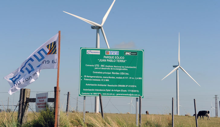 UTE inauguró este jueves el parque eólico Juan Pablo Terra ubicado en un predio del Instituto Nacional de Colonización en Artigas.