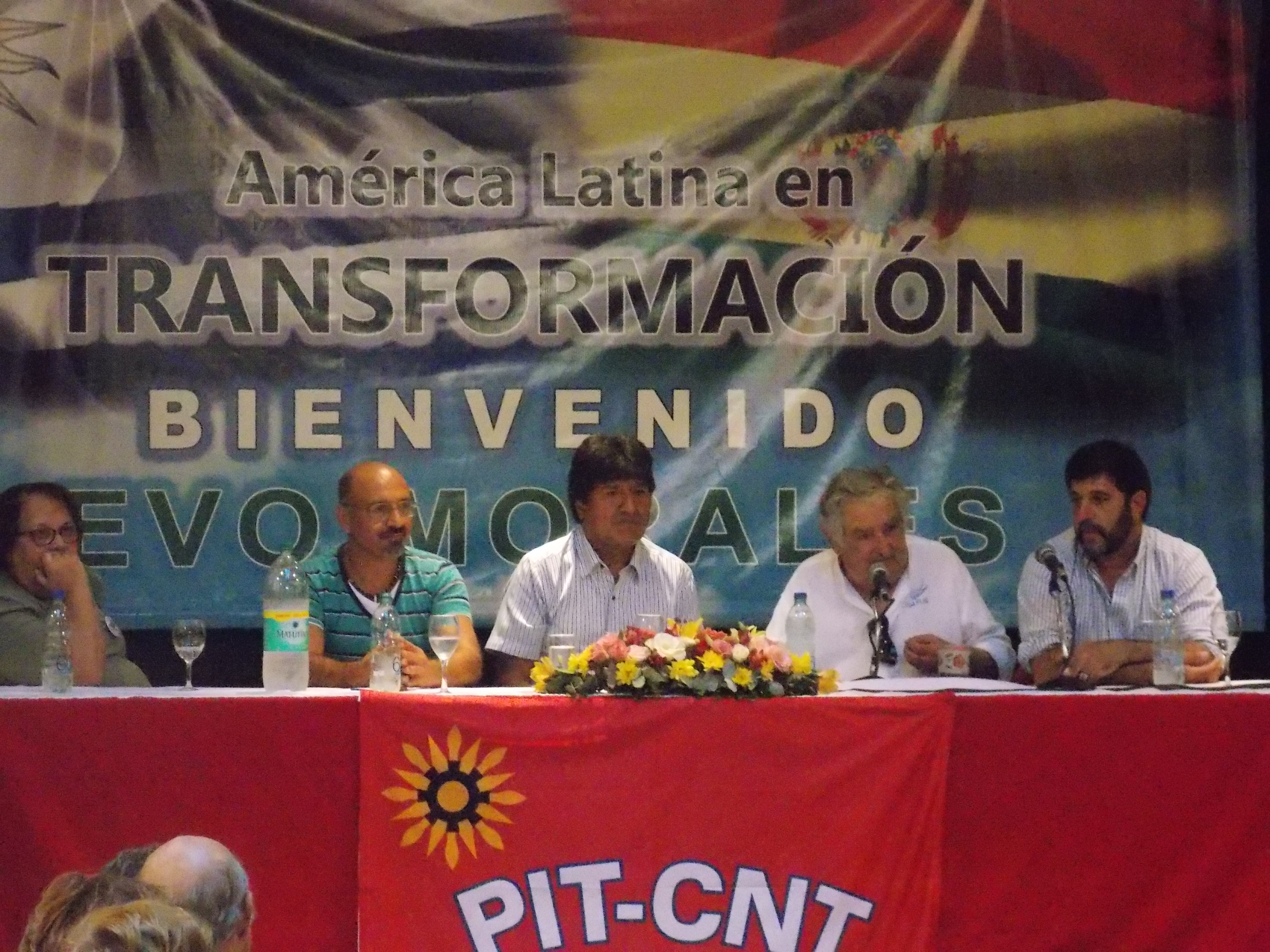 Los presidentes de Bolivia y Uruguay, Evo Morales y José Mujica, firmaron ayer cinco acuerdos de cooperación sobre vías de transporte, medidas contra la discriminación racial, defensa de los derechos humanos, tratamiento de agua potable e investigación aplicada a la minería. Morales fue ovacionado durante su discurso en un colmado Paraninfo y participó con Mujica de un acto en el Pit Cnt.