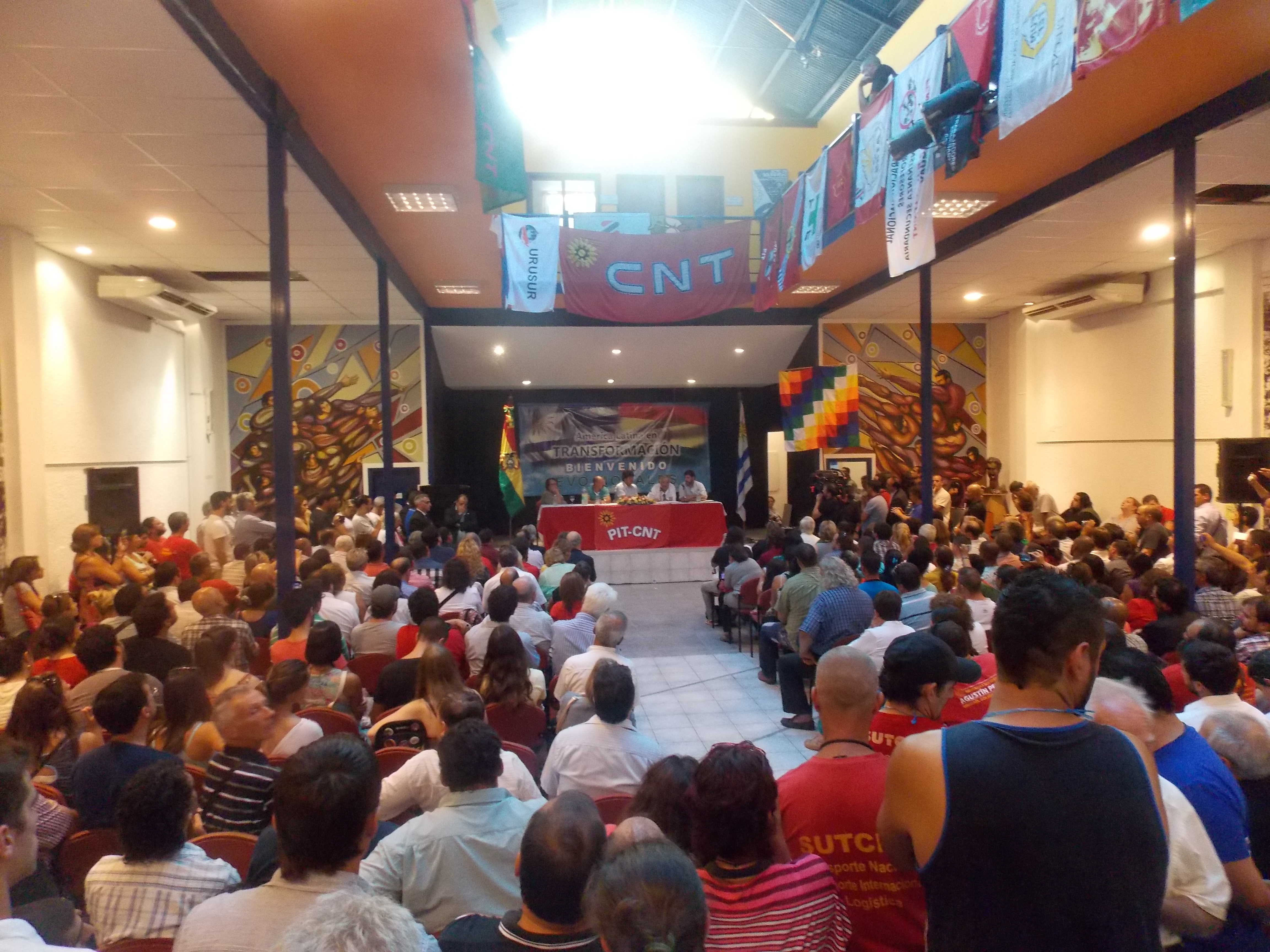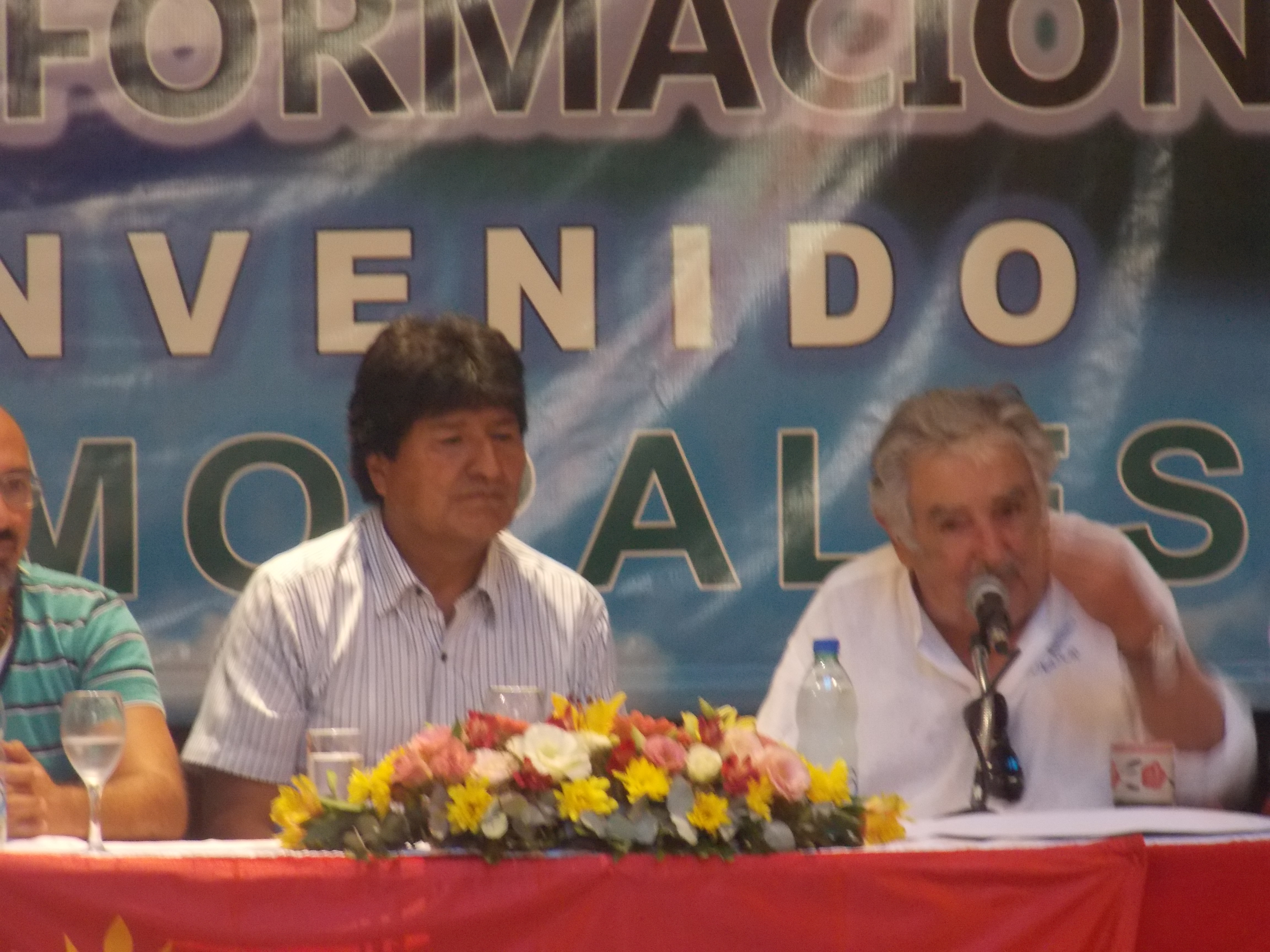 El calor dentro del Paraninfo era intenso, y varios intentaban abanicarse. La mayoría de los presentes eran universitarios pero también acompañaron el reconocimiento al presidente Morales, la presidenta del FA, Mónica Xavier, el senador Marcos Carámbula, el músico Daniel Viglietti, el novel diputado de Unidad Popular, Eduardo Rubio, y el embajador de Venezuela en Uruguay, Julio Chirino.