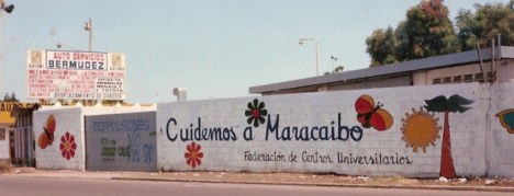 A finales de los años 80 nos planteamos asumir abiertamente la defensa del ambiente. que bastante malogrado estaba en el Zulia. Iniciamos esta gesta pintando murales en la ciudad de Maracaibo con consignas sobre cada uno de los temas ambientales que nos preocupaba. Tomamos parte del ímpetu de los jóvenes muralistas chilenos, hijos de quienes se cobijaron en esta generosa tierra ante el trauma del derrocamiento de Allende, que para ese entonces estudiaban con nosotros en la Universidad del Zulia.