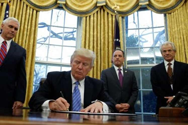 Después de firmar la primera orden en la sede del Pentágono en la juramentación del secretario de Defensa, James Mattis, Trump aseguró que la medida pretendía mantener alejados a los terroristas radicales islámicos.