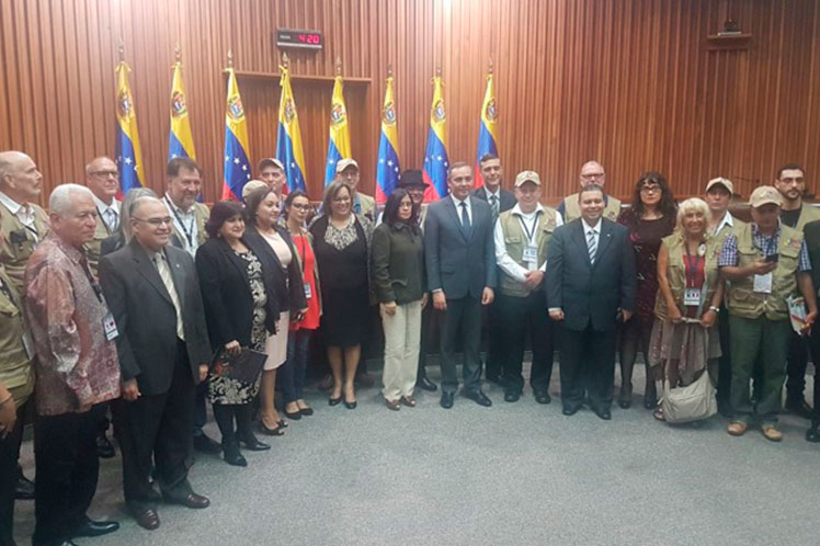 Según Oblitas, el acompañamiento internacional ‘romperá las barreras comunicacionales que internacionalmente se nos han impuesto a través de una matriz de descrédito, de que Venezuela no cuenta con instituciones sólidas capaces de llevar a cabo un proceso electoral transparente y seguro’. Estaban presentes los 22 representantes internacionales provenientes de Bolivia, Brasil, Canadá, Chile, Colombia, España, Estados Unidos, Italia, Libia, México, y Uruguay, quienes conocieron el objetivo y fundamento jurídico de la ANC, así como las bases comiciales que establecieron el ordenamiento de la convocatoria.