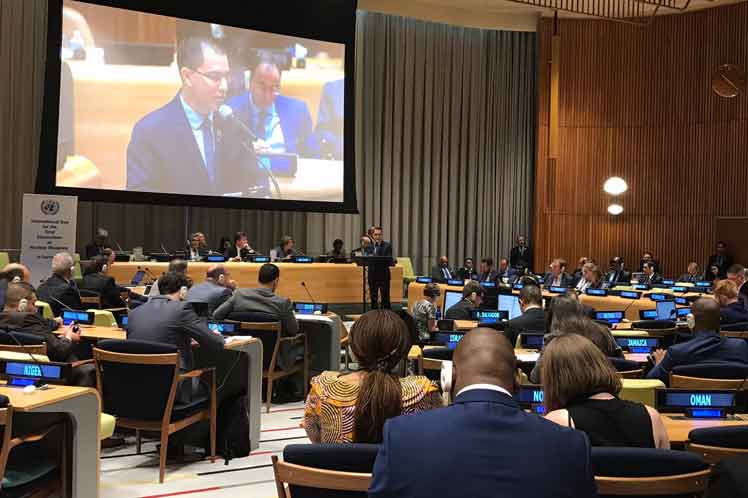 En el Día Internacional para la Eliminación Total de las Armas Nucleares, el canciller venezolano, Jorge Arreaza, intervino a nombre del movimiento de 120 países en un foro de alto nivel para celebrar la jornada, en el cual advirtió que la única manera de liberar a la humanidad del peligro que representan los letales artefactos es su total eliminación.