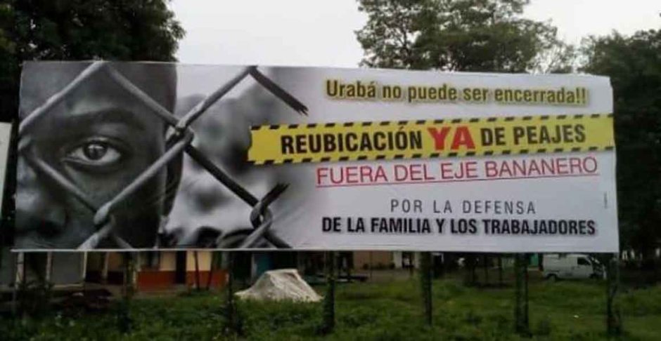 En los municipios y corregimientos de la región del Urabá antioqueño han ocurrido desde la noche del miércoles 3 de enero acciones y levantamientos populares en protesta contra la medida impositiva del Gobierno Nacional de poner a funcionar tres peajes en la carretera principal que une al eje bananero con la Medellín, capital del departamento de Antioquia.