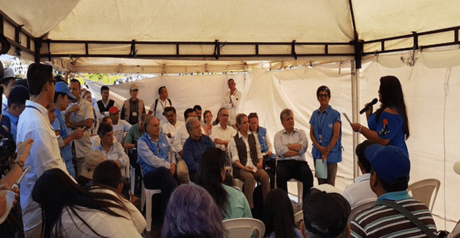 Previo a la llegada de Guterres al lugar, Mauricio Jaramillo, integrante del Consejo Político Nacional de la FARC, destacó la importancia de la visita del diplomático portugués a Colombia, expresión del acompañamiento de la comunidad internacional al proceso de paz.
