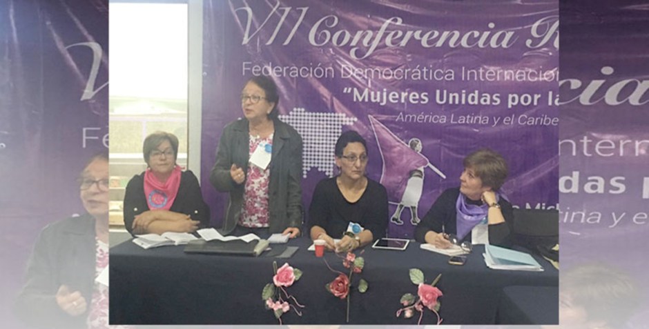 La VII Conferencia Regional se realiza los días 28, 29 y 30 de enero, en este espacio participan también Gloria Inés Ramírez, Vicepresidenta regional de la FDIM, Alicia Campos, Coordinadora Regional de la FDIM, Margarita Zamudio, Presidenta de la Unión Nacional de Mujeres Mejicanas, entre otras mujeres comprometidas con el avance de la lucha feminista por los derechos de las mujeres y la defensa de la paz.