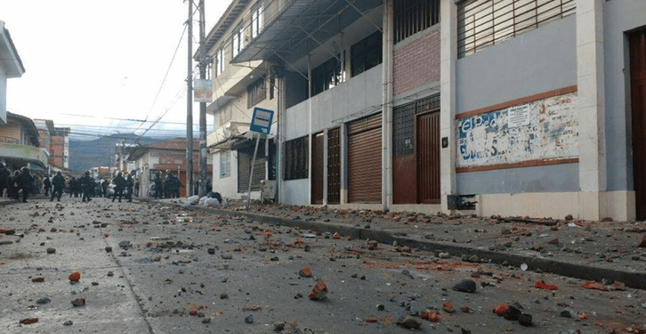 Jaime Caycedo, quien desmiente las afirmaciones de Rafael Pardo, Ministro del Posconflicto y del editorial del Diario El Espectador de febrero 6, en las cuales este alto funcionario, editorialistas y provocadores contra la paz “coinciden en atenuar la gravedad de conductas que terminan favoreciendo delitos contra la libertad de reunión y expresión ciudadanas y estimulando asonadas que ponen en riesgo la vida y la integridad de compatriotas o daños de bienes inmuebles y vehículos”. Y agrega en el documento “es más asombroso aún que el Código de Policía que se aplica con rigor extremo a las protestas cívicas, estudiantiles, de vendedores ambulantes o campesinas, se vuelve tolerante ante las agresiones violentas contra quienes han decidido actuar sin armas en democracia”.