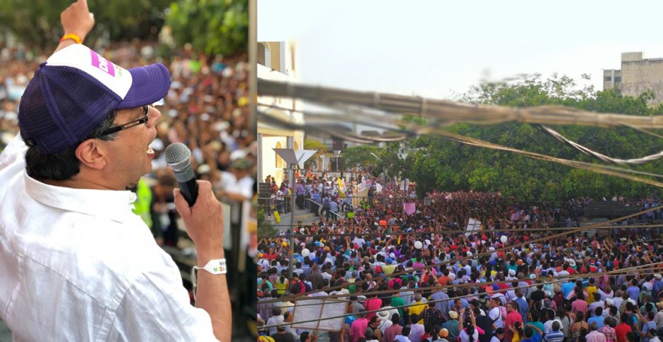 La consigna de los organizadores del imponente manifestación en el Parque Santander de la ciudad Sincelejo fue “Somos la generación de la paz y no nos dejaremos quitar ese sueño. Podemos hacer historia”. Y el candidato agregó: “Al odio les respondemos con amor.