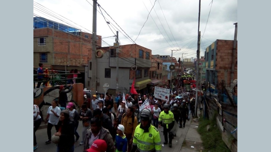 En esta jornada participaron marchas provenientes de Soacha, Bosa, Tunjuelito, Usme y Ciudad Bolivar organizados por colectivos juveniles, asociaciones comunitarias, de mujeres, artistas, fuerzas políticas y sociales de izquierda, entreotras, para exigir mejores condiciones salariales y trabajo digno, paz con justicia social, oportunidades de empleo y cese a la estigmatización, persecución y señalamientos contra los jóvenes de estos territorios del Distrito Capital.