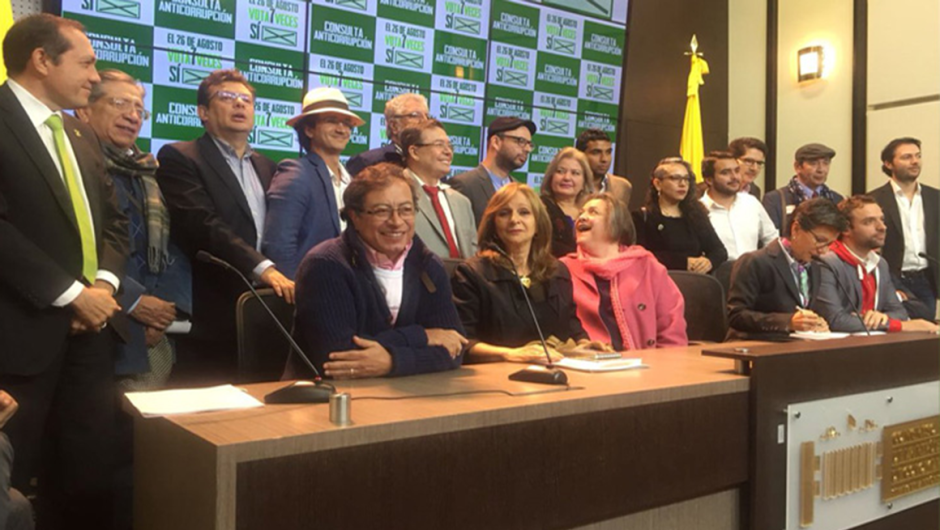 Gráfica.- Seguimos en unidad estratégica hacia la consulta anticorrupción el próximo 26 de agosto. Gustavo Petro, Angélica Lozano Correa, Ángela María Robledo