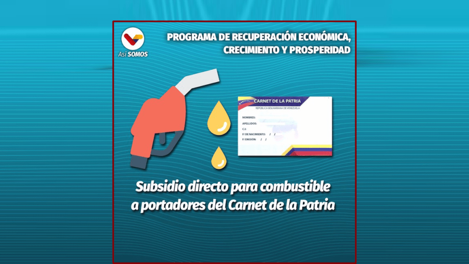 Además se aplicará un sistema de subsidio del combustible a través del Carnet de la Patria y para ello se instalará un lector del carnet en las más de 8.000 estaciones de gasolina del país, que activará el surtidor y de acuerdo a la capacidad del tanque procederá a su llenado, explicó.