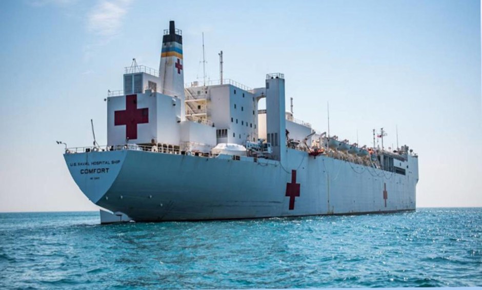 El «Comfort» es el barco hospital más grande del mundo, tiene 894 pies de eslora, una tripulación de 65 marinos y 1.215 personas entre militares y voluntarios médicos, enfermeras de variadas nacionalidades y especialidades, dispone de una pista de aterrizaje de 894 pies de largo y una capacidad bélica muy bien ocultada, además de una flotilla de helicópteros de largo alcance.