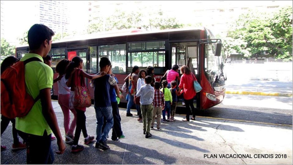 Niñas y niños viajaron cómodamente y fueron atendidos por el personal (también madres) desde el inicio del trayecto, entre ellas Ysabel Bompart y Rosanna Hernández, quienes no escatimaron su carisma y simpatía para brindarles un primer día inaugural lleno de sorpresas, diversión, conocimiento y arte. Entre las actividades que iniciaron el plan vacacional incluyeron: un pinta caritas en el Teatro Teresa Carreño al cual tendrán visita guiada antes de salir al CENDIS; una bailoterapia de recepción en la sede con su respectivo desayuno; diversas dinámicas de grupo y juegos; visita al estudio de grabación, en el cual tuvieron una inducción del proceso y equipos de grabación sin perder la oportunidad de hacer una prueba de audio donde algunos cantaron a capella ritmos como el Hip Hop y una balada criolla. Al mediodía, después de un sabroso almuerzo tuvieron un encuentro con el arte, en el que pintaron y se les dio una inducción en artes gráficas logrando el logo del Plan Vacacional CENDIS 2018.