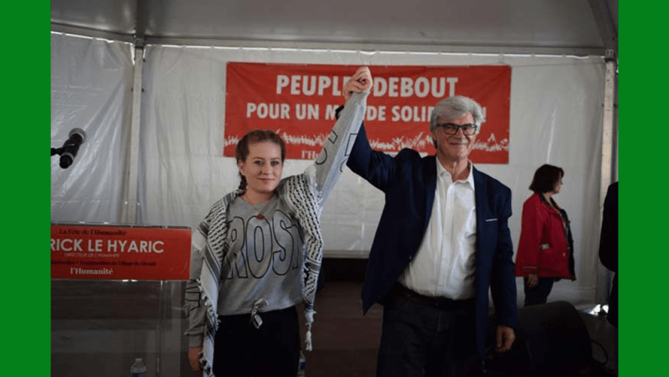 ‘Tenemos la inmensa alegría de tener con nosotros hoy, pese a que muchas fuerzas de opusieron, a Ahed Tamimi, sus padres y hermanos’, declaró el director del periódico L’Humanité, Patrick Le Hyaric, ante delegaciones de decenas de naciones.