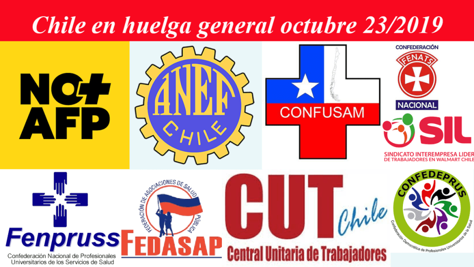 Central Unitaria de Trabajadores – Coordinadora No Más AFP – Asociación Nacional Empleados Fiscales ANEF – CONFUSAM – FENPRUSS – Confederación Coordinadora de Sindicatos del Comercio y Servicios Financieros – FEDASAP – Confederación Bancaria- CONFEDEPRUS – Sindicato Interempresa Líder SIL – Colegio de Profesores – FENATS Nacional.