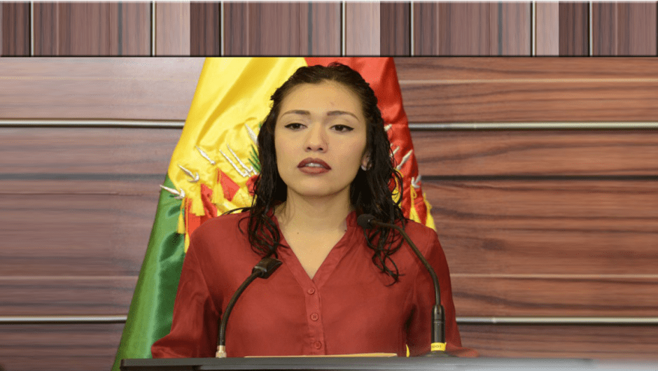 ‘Como su pedido de renuncia al presidente Evo Morales quedó en ridículo, esta vez lanzó una serie de amenazas para dañar al país y dañar la economía como la toma de instituciones y el cierre de las fronteras’, afirmó en conferencia de prensa la legisladora.