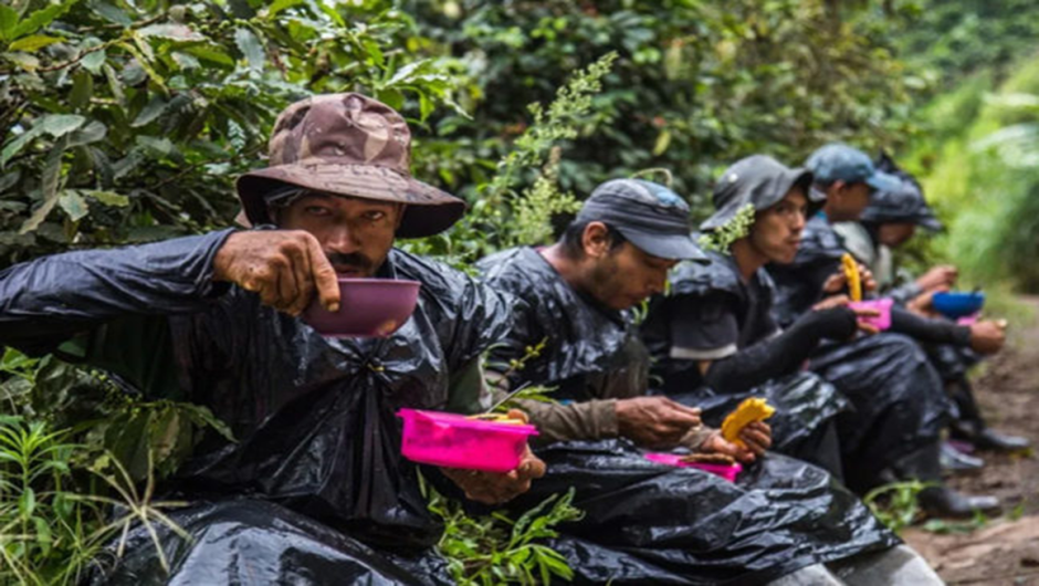 Trabajadores cafeteros en Ciudad Bolívar, Antioquia. Foto Nelson Enrique Agudelo Vélez, Escuela Nacional Sindical.