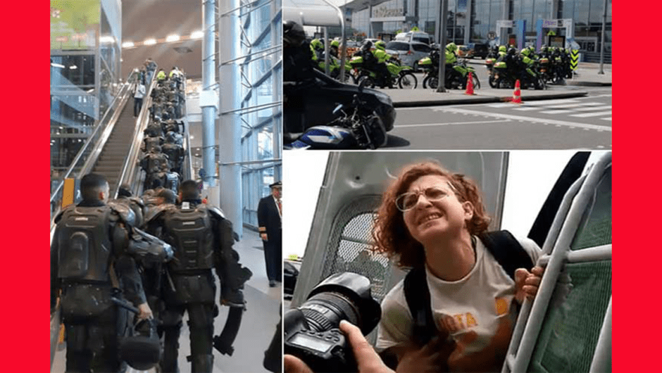 En el aeropuerto está despegando el autoritarismo: policía detiene personas, que en forma pacífica y sin riesgo la seguridad, hacían un plantón. Una violación del derecho de protesta. Y luego detienen a periodistas que cubrían el hecho. Violación de la libertad de expresión, expresó el académico Rodrigo Uprimny.