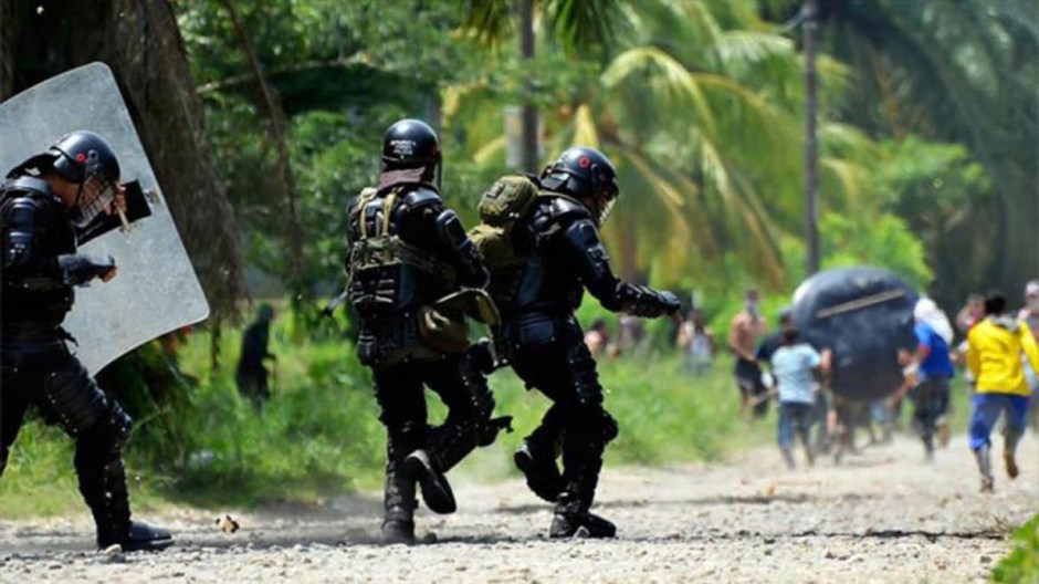 Hace poco, en las veredas el Guineo y el salado, en la jurisdicción del corregimiento Juan José del municipio de Puerto Libertador, han sido violentados, con notada represión por miembros del ESMAD y uniformados de la Fuerza Pública Campesinos y Campesinas que defienden la implementación del Acuerdo de Paz en el marco de la sustitución concertada y gradual de cultivos de uso ilícito (coca).