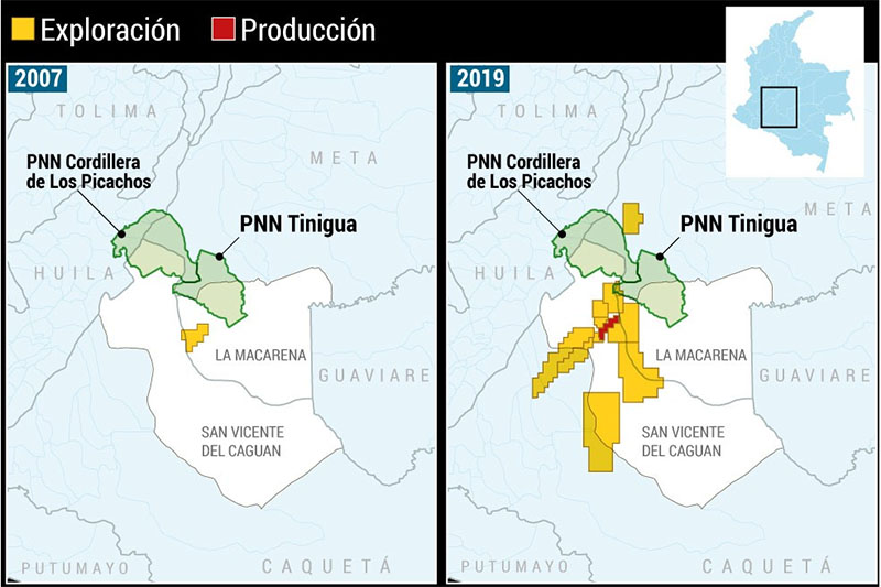 El Gobierno colombiano tampoco dice nada sobre las multinacionales petroleras, a quienes les conviene que la zona se incendie continuamente para que así deje de ser tierra protegida, y poder recibir el permiso de explotar su suelo. “Los bloques petroleros respaldados por las autoridades son los principales sospechosos de la deforestación, ya que desde que llegaron a la zona, se ha visto una