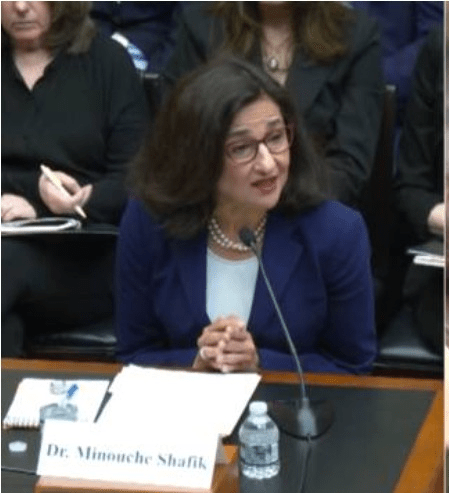 La rectora de la Universidad de Columbia testificando ante el Congreso