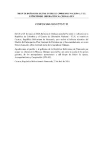 Estos son los comunicados firmados de forma conjunta entre las delegaciones de diálogos del Gobierno y del Ejército de Liberación Nacional. Comunicados 23-24 y 25