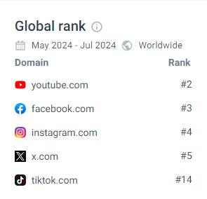 Por su parte, la red X ocupa el quinto lugar del tráfico global de Internet.